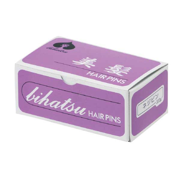 髪の長めの人、ストレートの人にはこれからも使われるピン。まとめ髪の仕上げに最適。強くまとめたい場合には先を曲げて使用する。小分け箱入り。