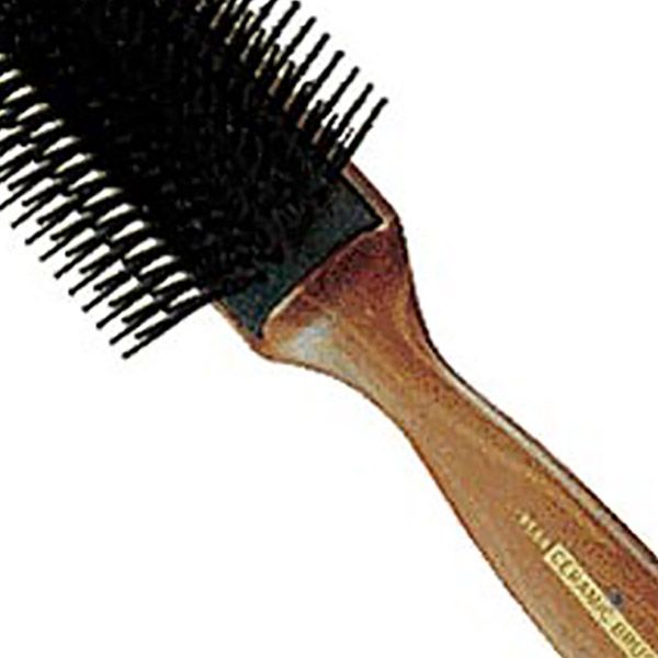 セラミックスケルトンブラシ。先丸のナイロン毛で頭皮を傷めずにブラッシングできます。