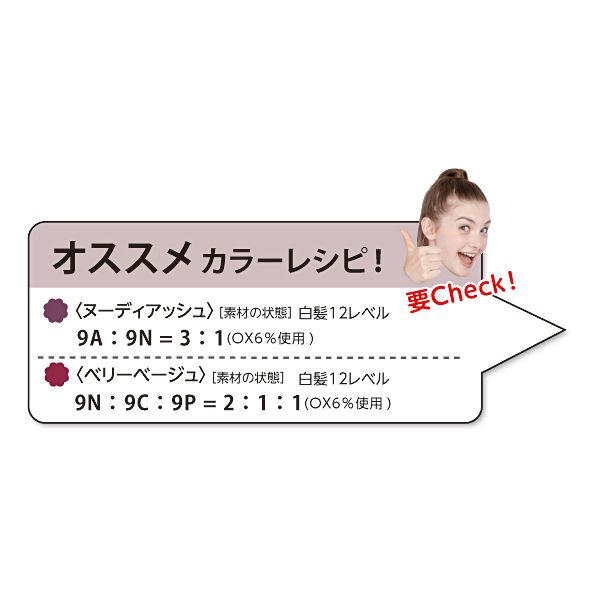 褪色が鮮やかで、髪色が持続。「カミツレエキス」「カンゾウエキス」配合で繰り返しカラーリングに優しい。アップル系のフルーティフローラルの香り。