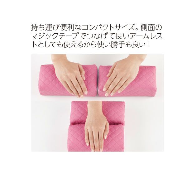 持ち運び便利なコンパクトサイズ。側面のマジックテープでつなげて長いアームレストとしても使えるから使い勝手も良い!