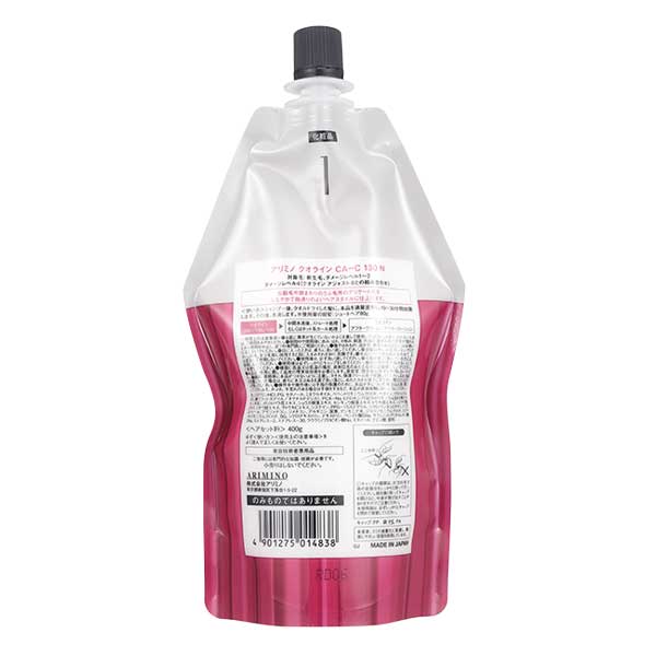 水,システインHIC,セタノール,PG,ミネラルオイル,ベヘントリモニウムクロリド,ヒドロキシプロピルトリモニウム加水分解ケラチン,ガリカバラ花エキス,ショウガ根エキス,センキュウ根エキス,トウキ根エキス,シャクヤク根エキス,ジオウ根エキス,サトウキビエキス,テオブロマグランジフロルム種子脂,PPG-15ステアリル,シクロペンタシロキサン,イソプロパノール,ステアレス-2,ステアレス-30,ステアリルトリモニウムブロミド,アモジメチコン,ペンテト酸5Na,アンモニア水,システイン,ジメチコン,アルギニン,ジココジモニウムクロリド,ラウロイルグルタミン酸ジ(フィトステリル/オクチルドデシル),尿素,ステアルトリモニウムクロリド,PCA-Na,炭酸水素アンモニウム,BG,シクロデキストリン,デキストリン,ラウラミノプロピオン酸Na,エタノール,クエン酸,香料