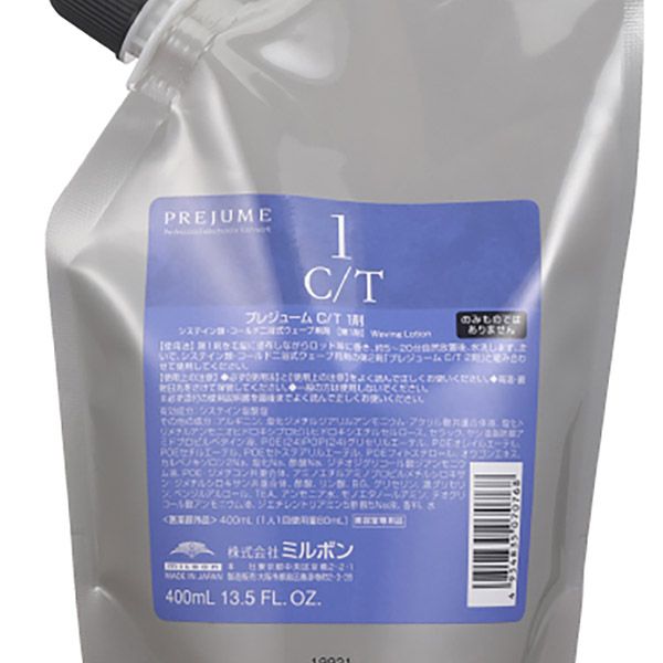 <成分>システイン塩酸塩<その他の成分>アルギニン、塩化ジメチルジアリルアンモニウム・アクリル酸共重合体液、塩化トリメチルアンモニオヒドロキシプロピルヒドロキシエチルセルロース、セラック、ヤシ油脂肪酸アミドプロピルベタイン液、POE(24)POP(24)グリセリルエーテル、POEオレイルエーテル、POEセチルエーテル、POEセトステアリルエーテル、POEフィトステロール、オウゴンエキス、カルベノキソロン2Na、塩化Na、酢酸Na、ジチオジグリコール酸ジアンモニウム液、POE・ジメチコン共重合体、アミノエチルアミノプロピルメチルシロキサン・ジメチルシロキサン共重合体、酢酸、リン酸、BG、グリセリン、濃グリセリン、ベンジルアルコール、TEA、アンモニア水、モノエタノールアミン、チオグリコール酸アンモニウム液、ジエチレントリアミン5酢酸5Na液、香料、水