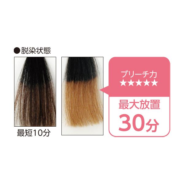 コントロールできるパワフルブリーチ。ホイップクリーム状だからムラにならない。1剤のパウダーが小分けになっているので使いやすく、スピーディーに施術できる。