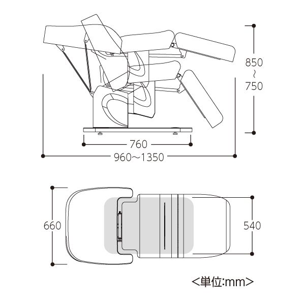 ●サイズ:幅660×奥行960〜1350×座面高さ750〜850mm