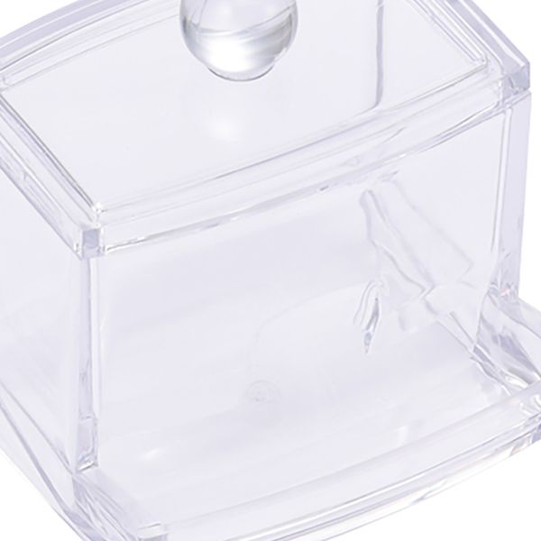 綿棒を収納できる透明ケース。中身の残量が見やすく、取り出しやすい設計。