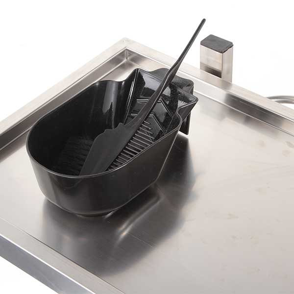 汚れにくく衛生的なステンレス素材で耐薬液性に優れ、ストレートアイロンなどを直置きしても安心。