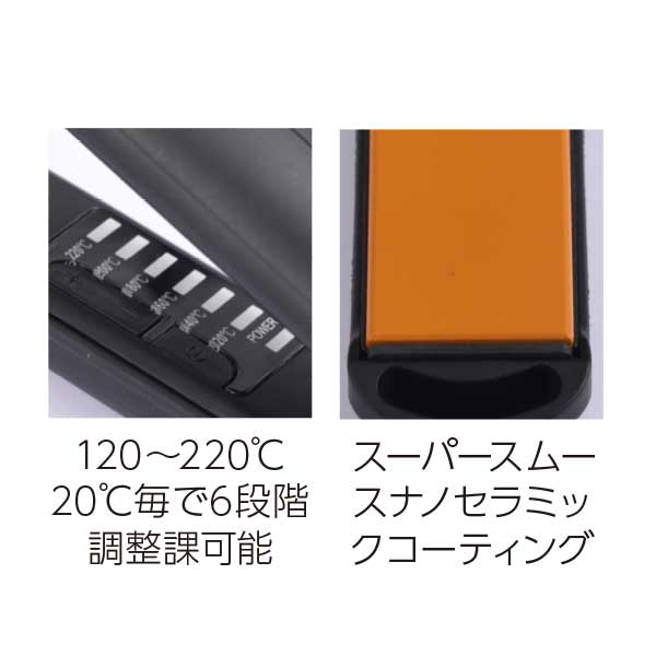 滑りのよいスーパースムースナノセラミックコーティングプレートが髪をキレイに伸ばし、美しく巻く。