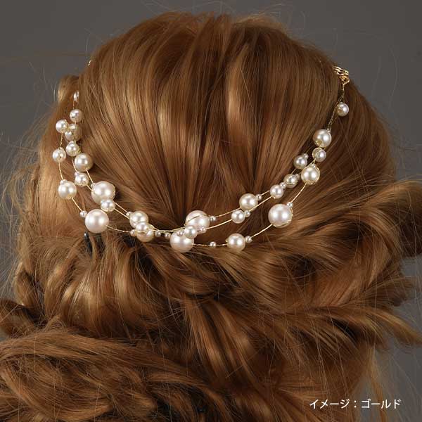 大小パールの華やかヘッドドレス ゴールド