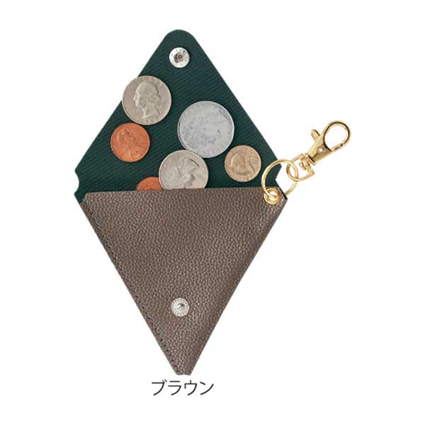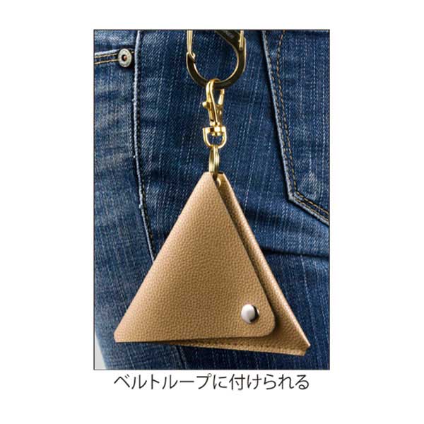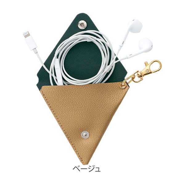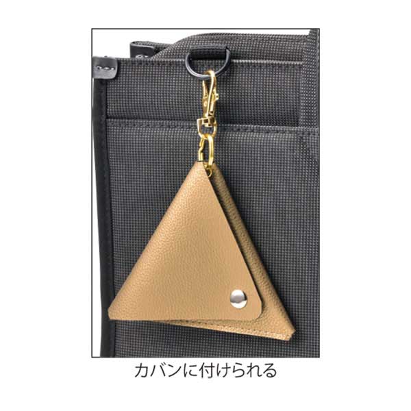 小銭や小物をすっきり収納できるトライアングルフォルムの小物入れ。
