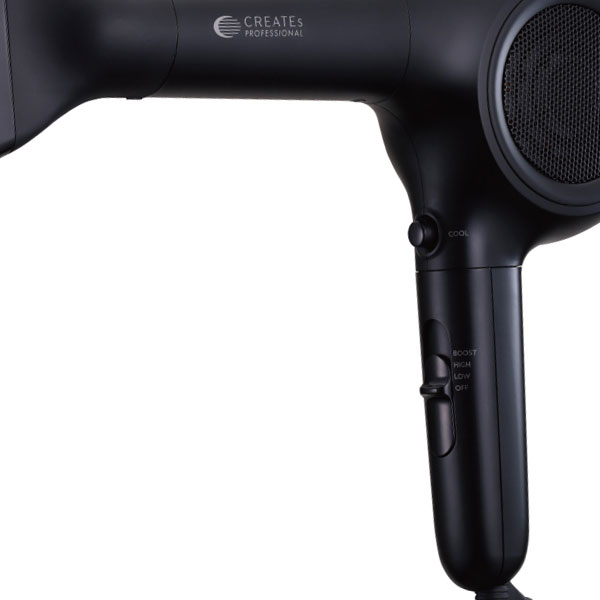 「強風」・「ワイド温域」・「クレイツイオン?」を兼ね備えたプロフェッショナル用ドライヤー。1300Wながら、1500W級の強力な風量のBOOSTモードにより、短時間で素早く髪を乾かす速乾性を実現。