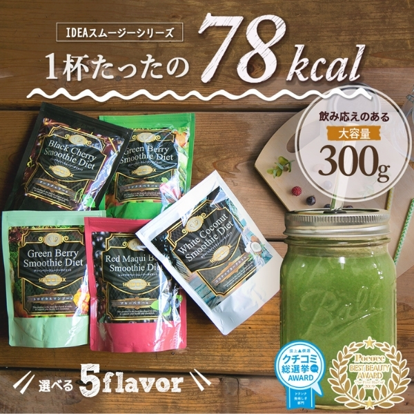 マイルドな甘みの味のスムージー。1杯78キロカロリーで置き換えダイエットにピッタリ!